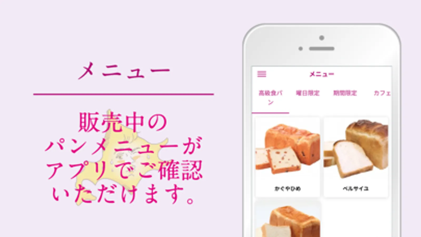 パン購入のご予約はお電話にて承っています。最新の食パンのメニューやカフェメニューはアプリからご確認いただけます。