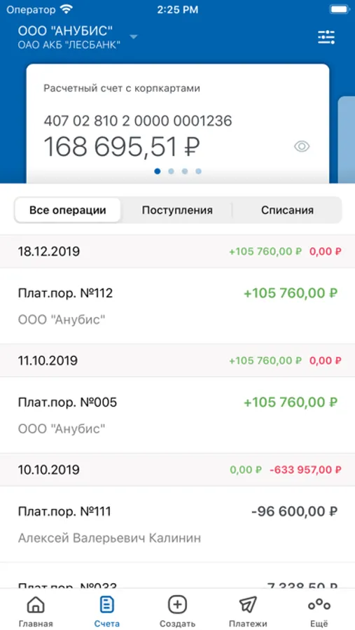 • Всё под контролем: проверяйте текущие остатки по счетам, отслеживайте исполнение платежей, просматривайте подробные выписки в любое удобное время;