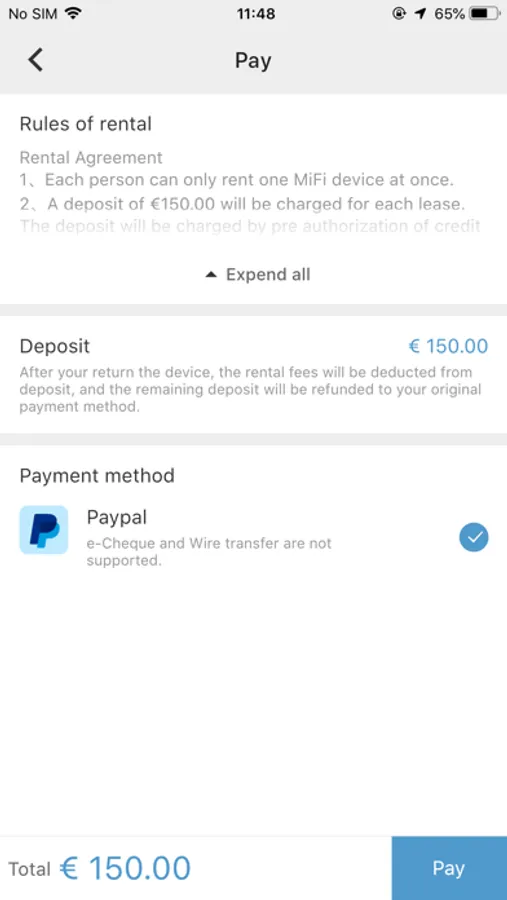 (1) App scanning QR code payment, fast rental with one step. PayPal pre-authorized payment deposit, safe and convenient.