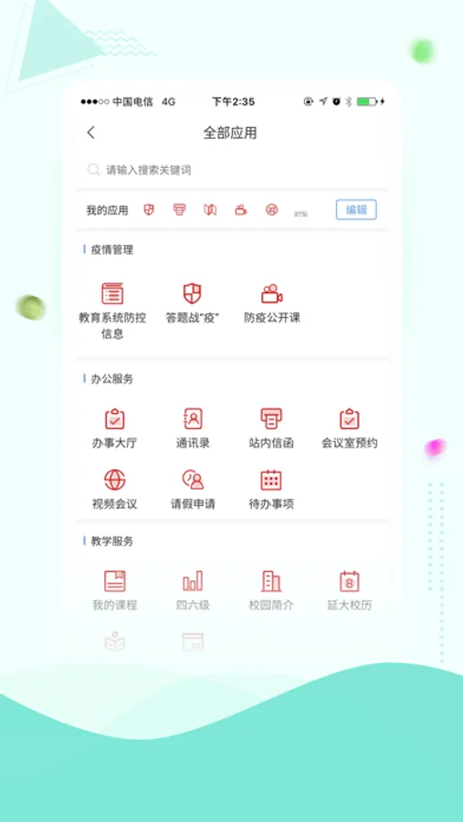 智慧延大是为广大师生提供的专属移动校园app,师生可以通过软件轻松获取大量学习资料,校园资讯,课程信息,成绩查询等,为用户学习和生活提供帮助;平台建设旨在实现“无处不在的移动学习、融合创新的网络科研、透明高效的校务治理、丰富多彩的校园文化、方便周到的校园生活,”的智慧校园愿景,让延安大学智慧校园触手可及。