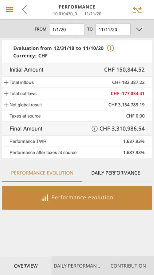 Performance: check the performance of your portfolios and find out more about individual positions.