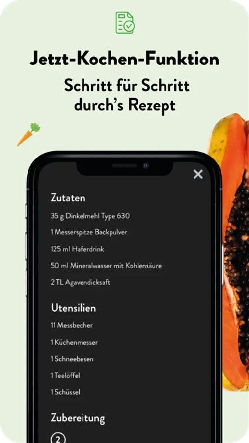 • Mit der „Jetzt kochen!“-Funktion Schritt für Schritt durch jedes Rezept