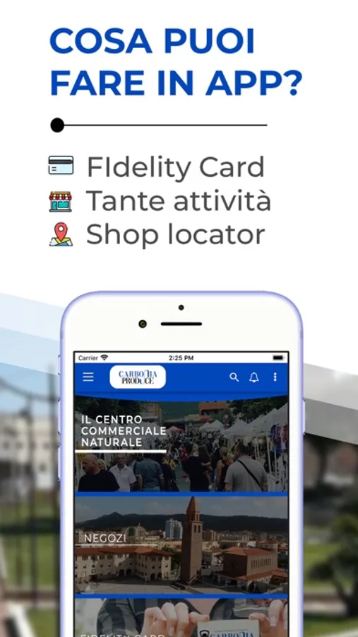 La nostra App si propone di portare su un piano digitale tutte le attività commerciali di Carbonia per la creazione di un vero e proprio Centro Commerciale Naturale.