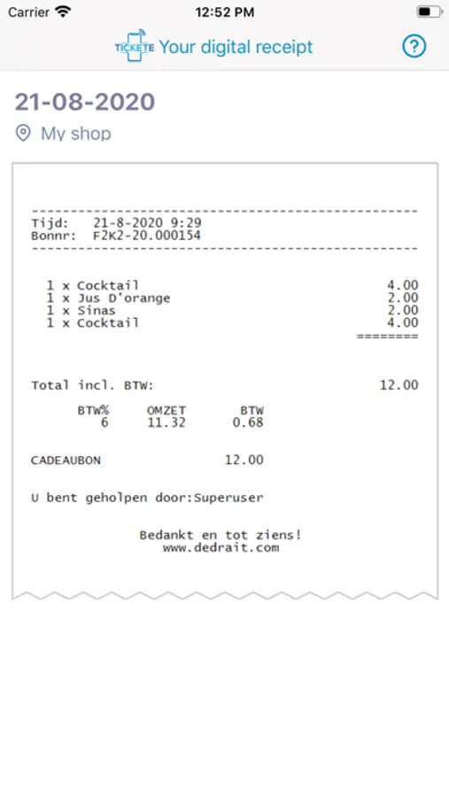 With the Tickete app you are able to retrieve your receipt on your smartphone. When a retailer has the Tickete device in shop, just touch the device briefly in order for the receipt to be dropped on your phone. From your phone you can save the receipt anywhere you want! Check it out!