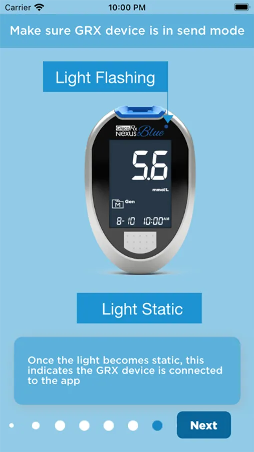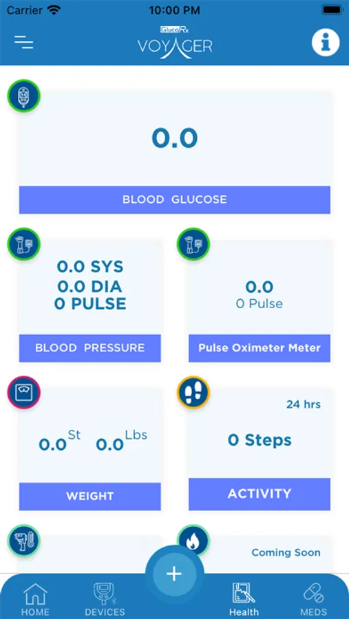 GlucoRx Voyager complete Telehealth App which supports connection to multiple GlucoRx Bluetooth enabled devices