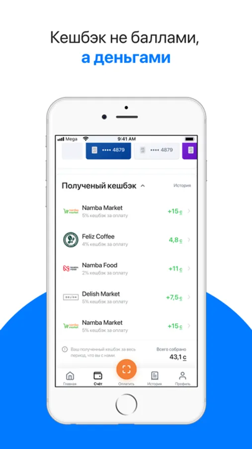 Оплачивай с помощью суперприложения “Namba One” и получай возврат денег кешбэком до 20% в любимых местах.