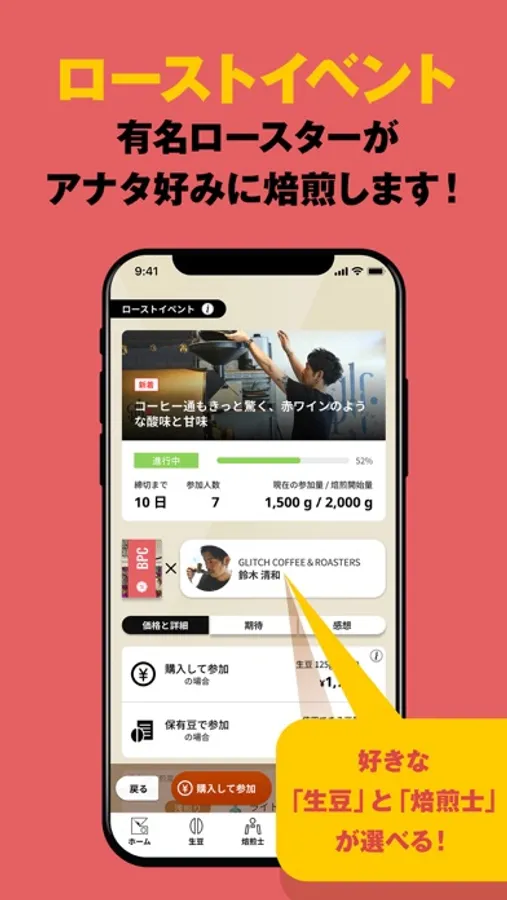 It is an app that allows you to purchase the best roasted beans that combine your favorite roaster and raw beans and share the joy.