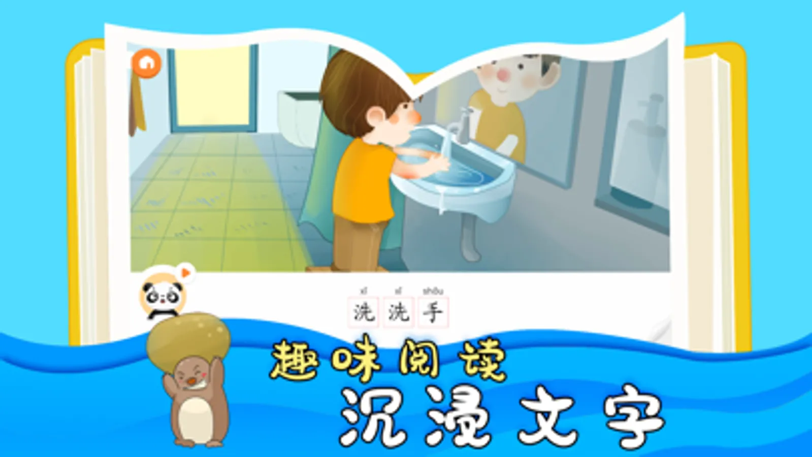 1. 汉字学习:文字与图片分离,文字清晰,且随名师普通话阅读一字一亮,提升表征学习能力;