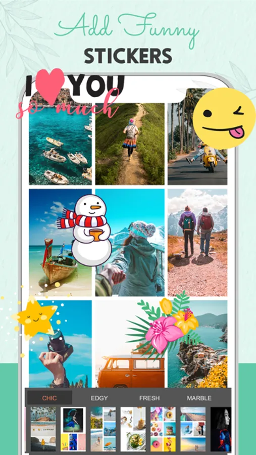 * Record your wonderful mood, share experience by inserting words anywhere in the collage