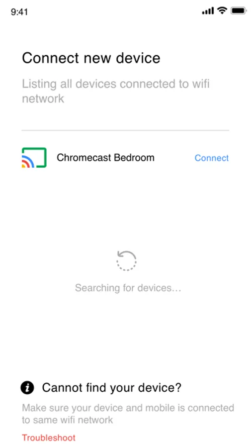 Simply open the streamer for Chromecast app and it will find all nearby devices and what is only left and to tap on the connect button.