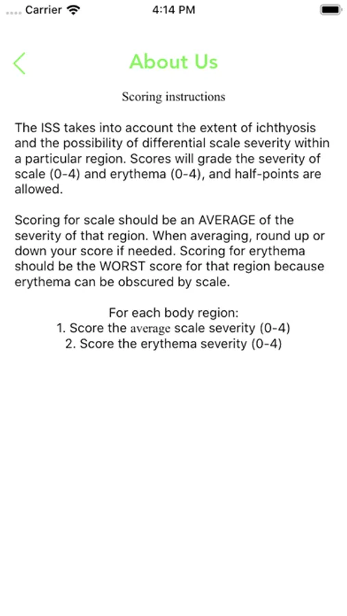 The Ichthyosis Scoring System (ISS) is a comprehensive and user-friendly instrument for assessing the extent and clinical severity of ichthyosis across the entire body. It is designed for use in clinical trials, research and clinical practice to assess severity and response to treatments. We make it easy for researchers and physicians to calculate a severity score for adults and children with ichthyosis.