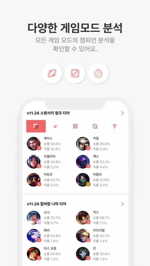 게임 모드별 챔피언 공략 및 분석 정보 제공