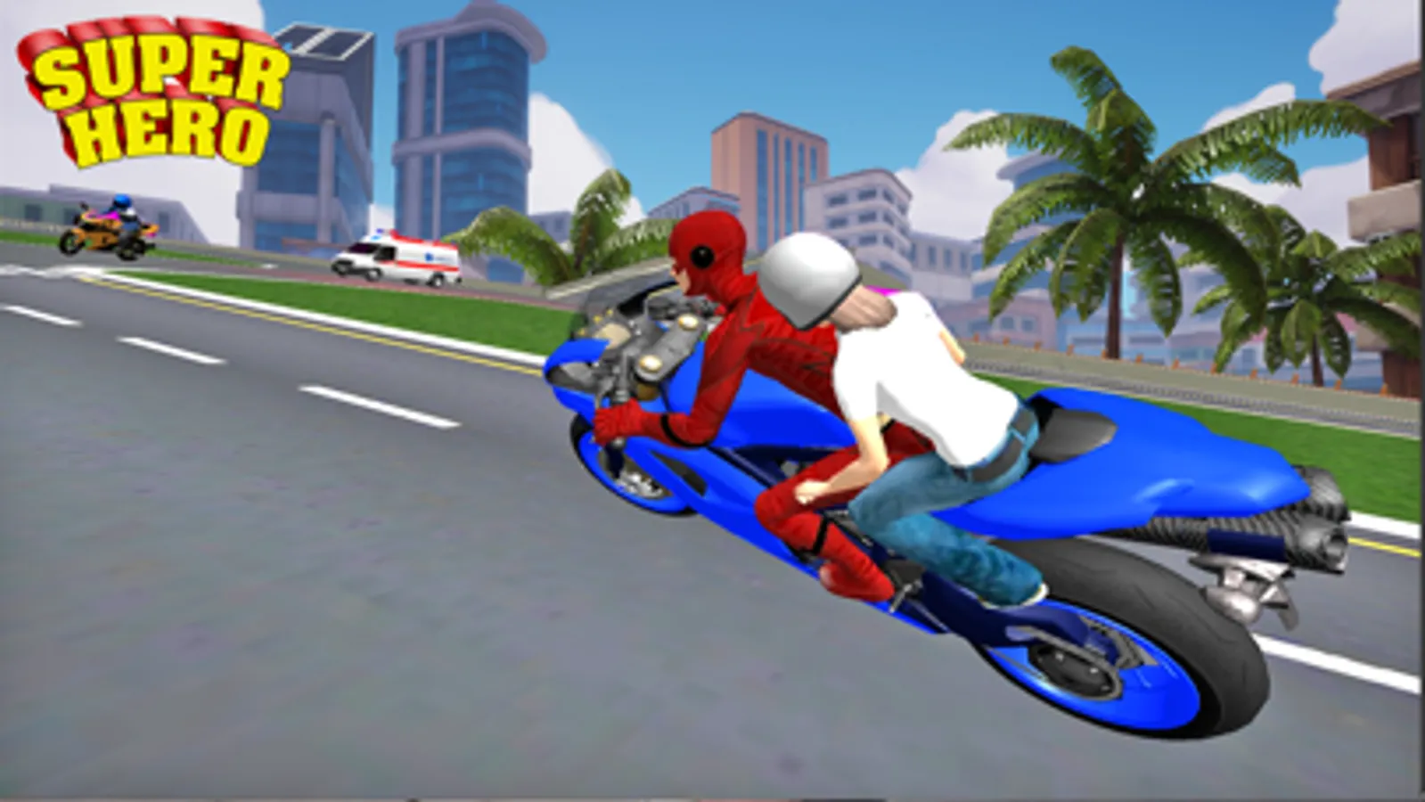 Welcome to the new idea of flash speed superhero bike taxi game simulator. Now its time to drive superhero bike in case of emergency like accidents in the city and your duty is as superhero you have to save all lives and solve the problems of common peoples.
