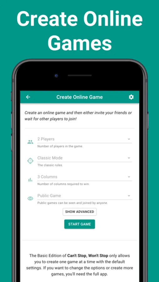 Fully-featured popular dice game based on "Can't Stop" board game: