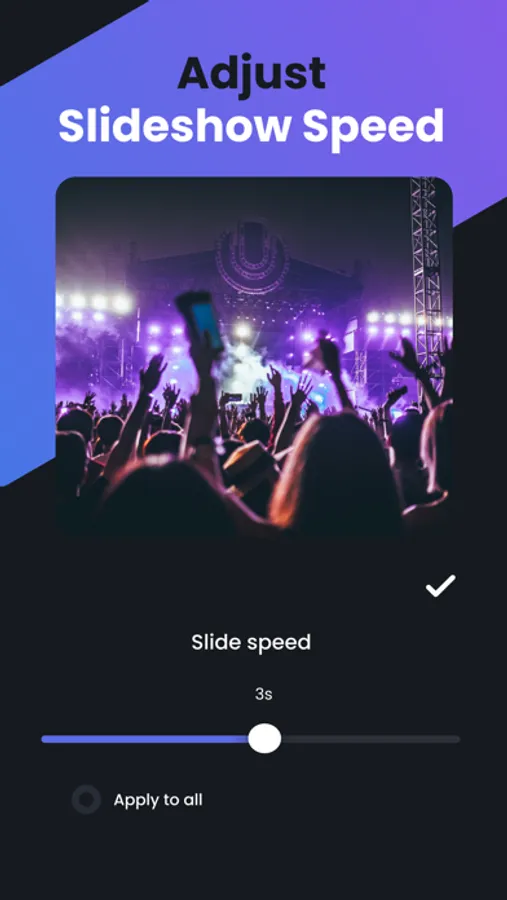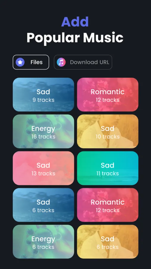 We understand that our users want to create slideshows and videos for different purposes. That’s why our video slideshow maker with music allows you to choose from several music categories including Sad, Romantic, Energy all featuring different tracks that can be added to your photo videos.