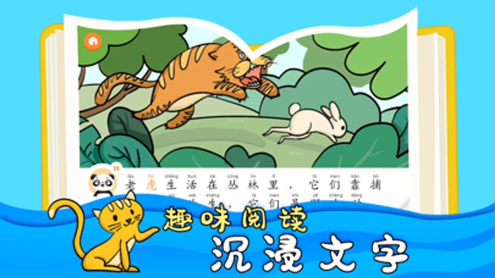 1. 汉字学习:文字与图片分离,文字清晰,且随名师普通话阅读一字一亮,提升表征学习能力;