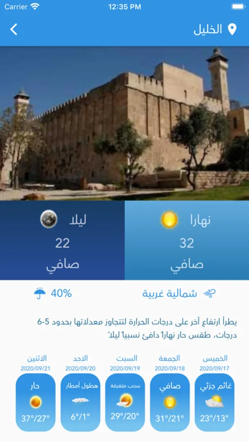 this application is specialized in weather news in Palestine