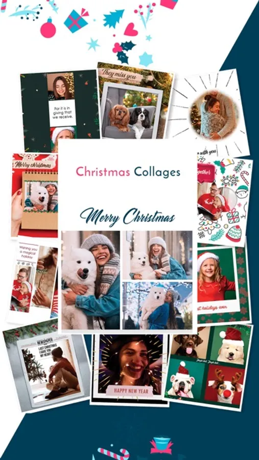 Congratulate this Christmas season with incredible Christmas photo collages with personalized messages and stickers.