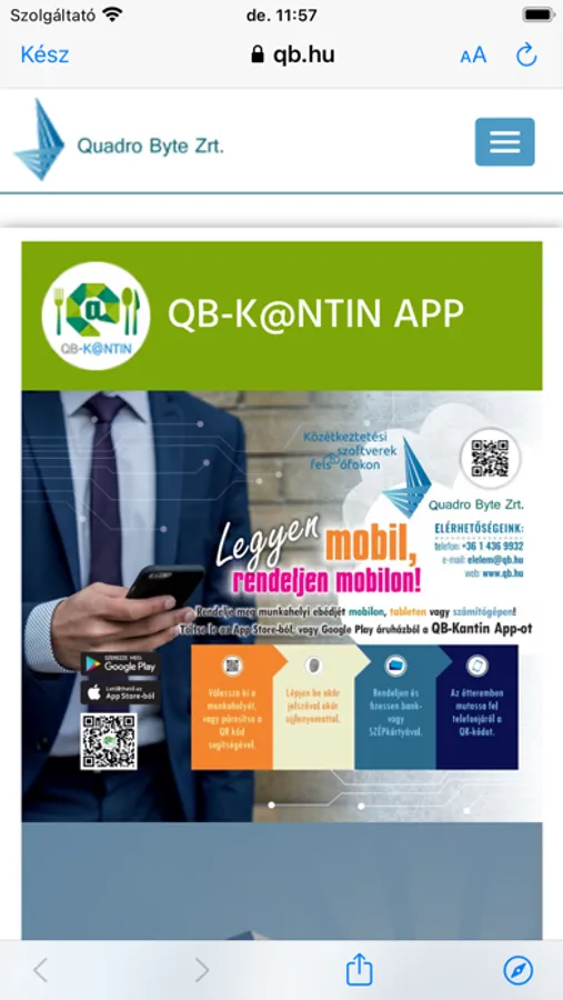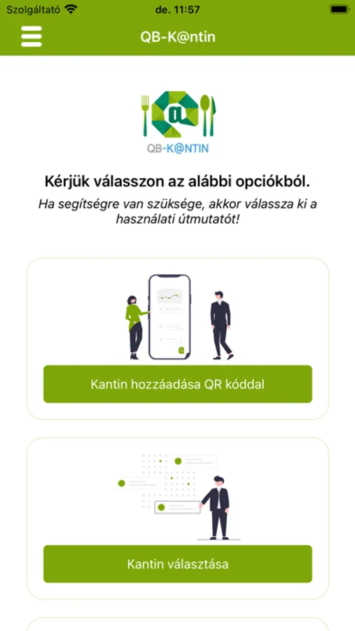 A felhasználók üzemi étkeztetés területen a WEB APP-on keresztül tudják a rendelkezésre álló étlapok alapján a megrendeléseiket leadni, módosítani, fizetni. A térítési díjakat, számlákat azonnal bankkártyával, vagy más készpénzmentes megoldással ki lehet egyenlíteni, elektronikus bizonylatolás mellett. Természetesen a fizetésre alkalmazható helyszínen is fizetési lehetőség kialakítása. Ilyenkor az QB-K@natin APP csak a rendelések bonyolítását biztosítja. A megoldások egy egységen belül vegyesen is alkalmazhatók.