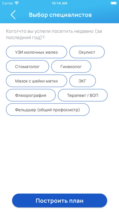 Единственное приложение, которое автоматически строит персональный план профилактических осмотров (посещения врачей).