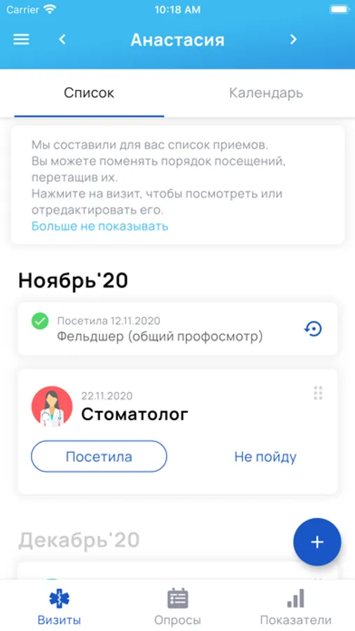 Создавайте визиты с повторениями, чтобы ходить к доктору регулярно (например, раз в год или раз в полгода).