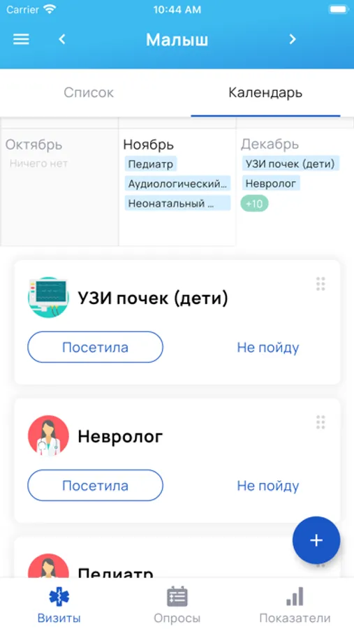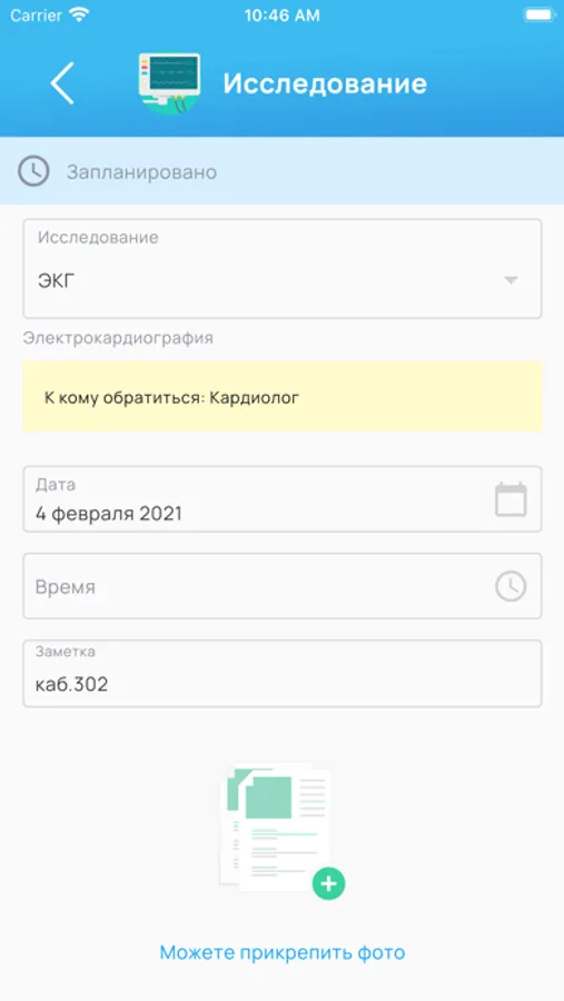 Планируйте походы к врачам и сохраняйте результаты посещения.