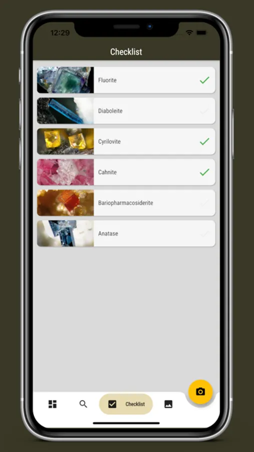 Minerals can also be searched on the most of the characteristics and they can be placed on a personal checklist.