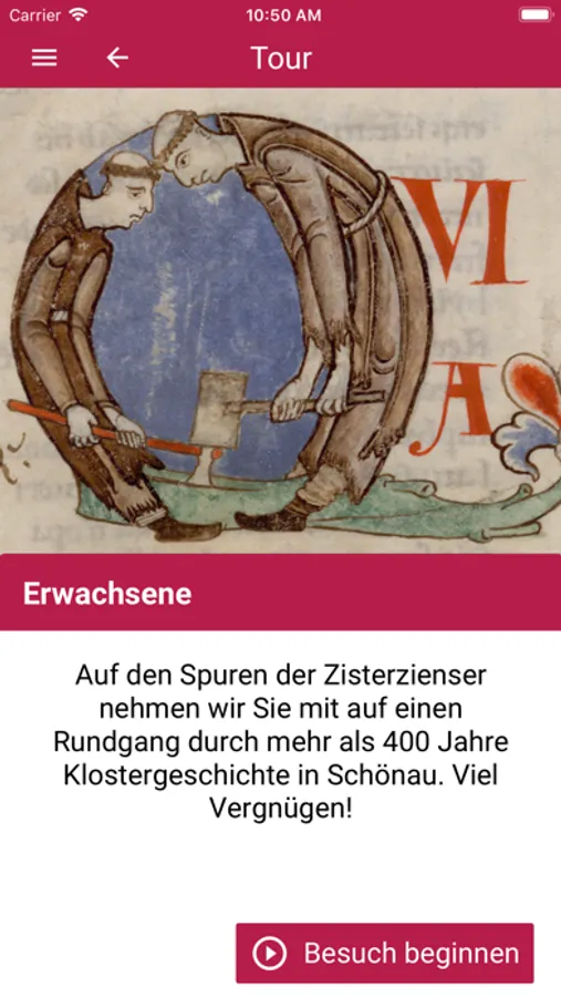 Die App führt interessierte Besucher auf einem Rundgang durch die Altstadt und erklärt an 28 Stationen den historischen Hintergrund der Klosteranlage – im heutigen und ihrem ursprünglichen Zustand. Sachkundige, professionell gesprochene Texte und eine Vielzahl an Fotografien, Illustrationen, Computersimulationen sowie kurze Videosequenzen lassen ein lebendiges Bild von dem Leben der Mönche und Laienbrüder im Schönauer Kloster entstehen.