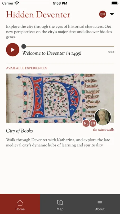 - Krijg op ieder punt van de wandeling expert commentaar door de historici die de app ontworpen hebben