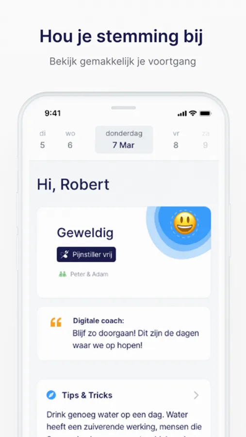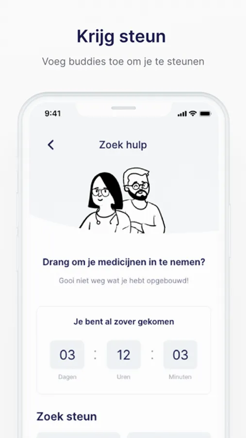 Je kan verschillende buddies instellen die je kunnen steunen tijdens het detox proces. Deze buddies kunnen wanneer jij dit wilt ook reageren op je check-in.
