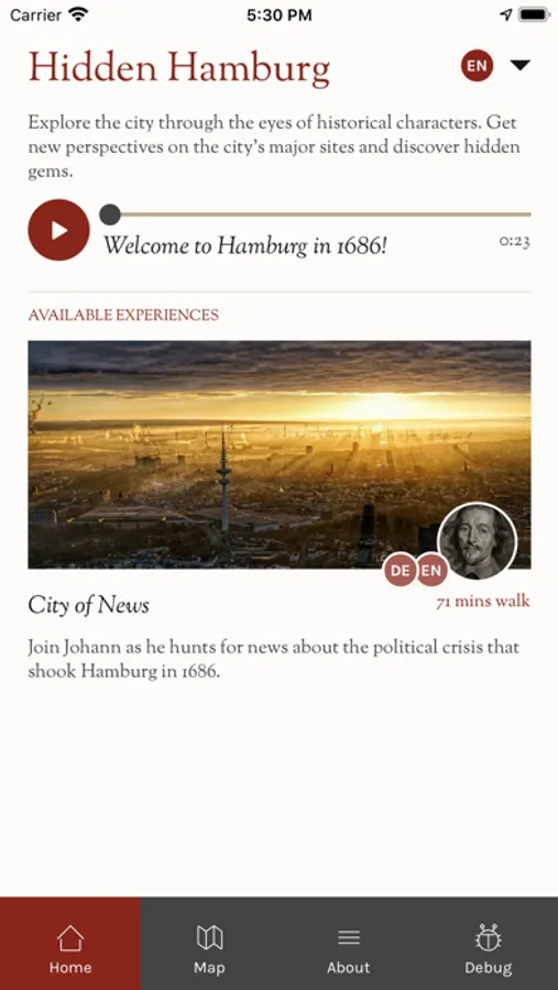 Entdecken Sie Hamburg auf eine neue Art und Weise. Verfügbar auf Deutsch und Englisch.