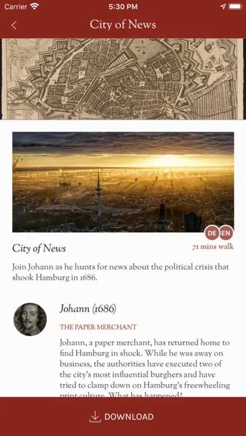 Erleben Sie Hamburg durch die Augen eines Stadtbewohners der Epoche Frühe Neuzeit: er führt Sie zu bedeutenden Orten seiner Zeit und erzählt dazugehörige Geschichten.