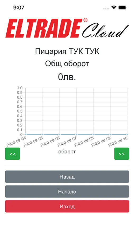 Дневният оборот може да се проследи чрез бутона със стрелки за връщане назад.