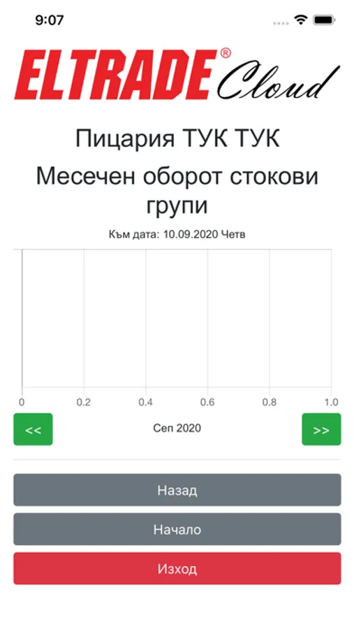 Оборотът по стокови групи и по артикули може да се провери както за текущия ден, така и за минал период.