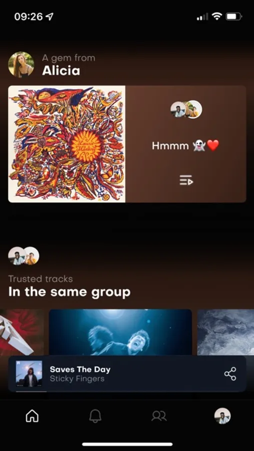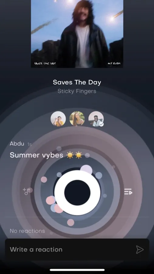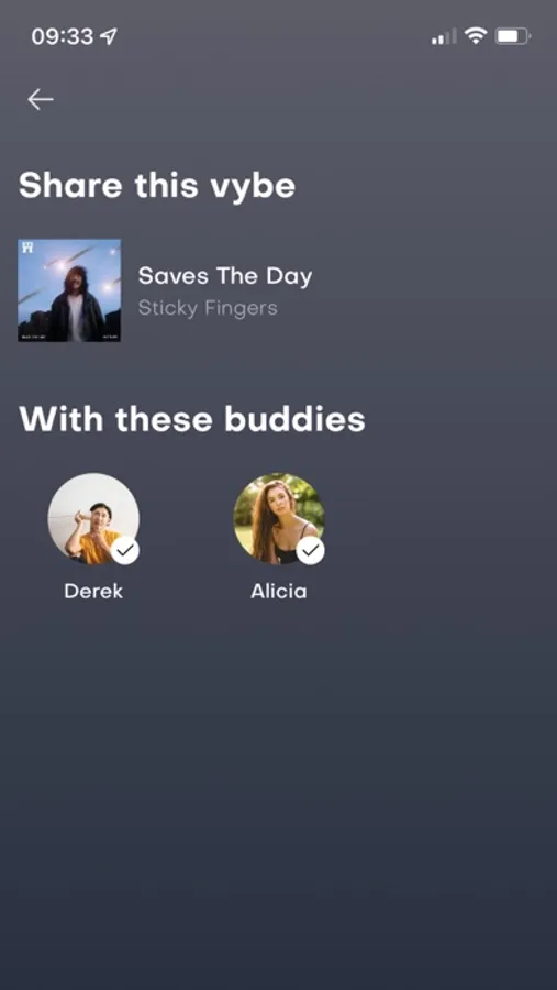 Vybes automatically shows you recent shares that match your current track. React to your buddies suggestions by bashing the hype button or discuss it in more depth by chatting.