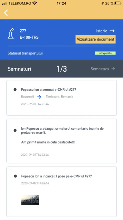 The legal centainty regarding each transport of goods is ensured through this app. The whole process can be verified and certified digitally, transparently and in real time, without phone calls, papers and wasted time. Moreover, the use of the application allows instant reporting of damage, faults and delays that may occur.