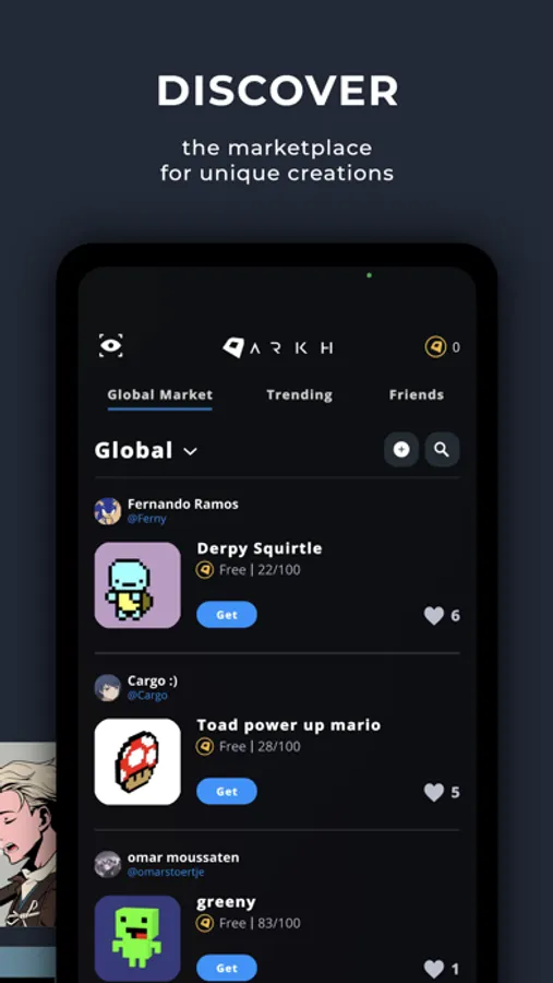 EXPLORE A GLOBAL MARKETPLACE: The ‘ARKH Marketplace’ lets you discover creations from all around the globe. Your creativity deserves to be seen. The world is your oyster!
