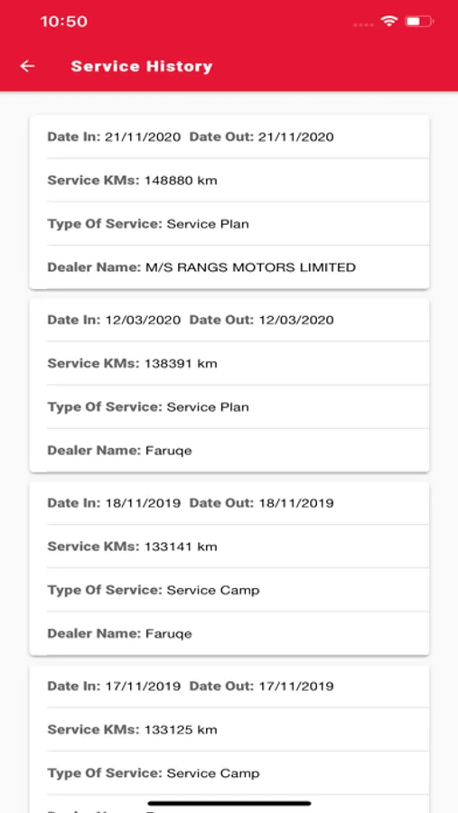 Track the Service history of your vehicle based on your visits to Dealer Workshops.