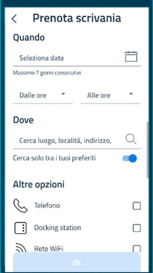 Sistema di prenotazione di spazi coworking per l'ente (scrivanie, sale riunioni, posti auto, etc.)