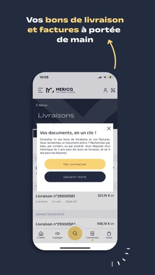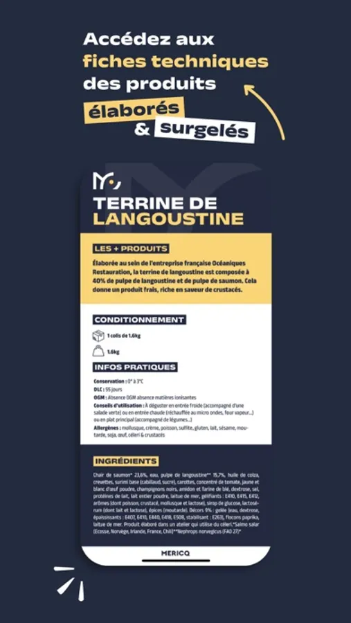L'application Mericq, c'est LA plateforme professionnelle pour commander vos produits de la mer en quelques clics 24h/24 et 7j/7. Elle vous propose l’offre de produits de la mer la plus étendue du marché mise à jour en temps réel.