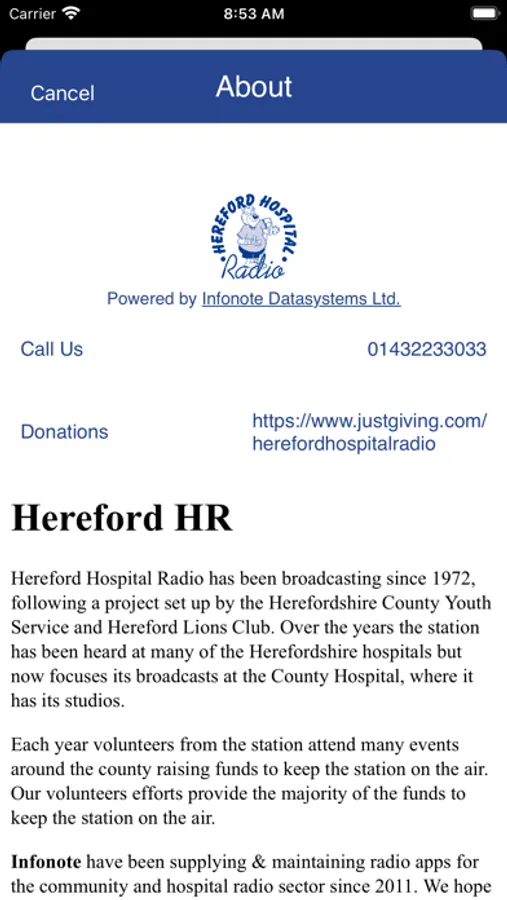 Hereford Hospital Radio are delighted to be able to introduce their very own iOS app.