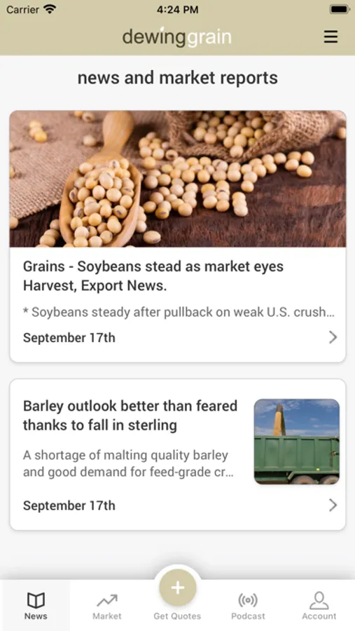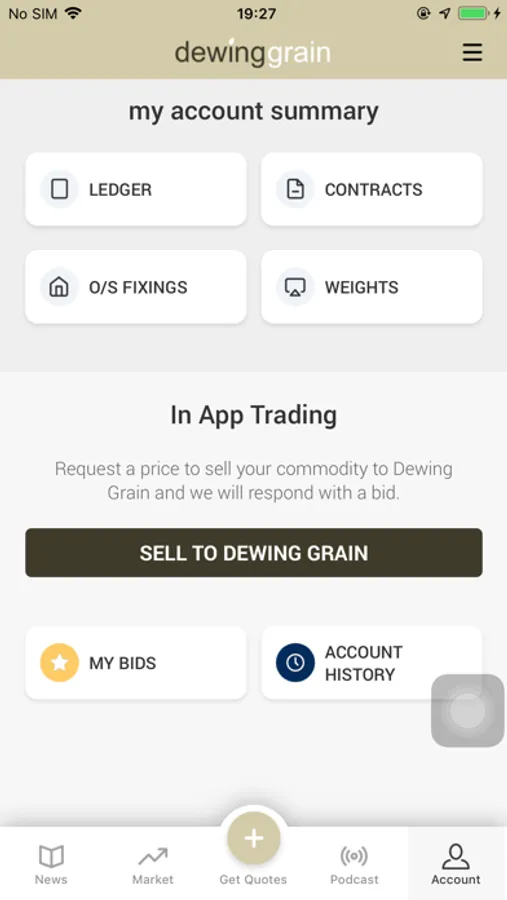 Dewing Grain is a trading platform that helps traders connect with buyers and sellers. Using the app, farmers will be able to submit a request to sell. Farmers will be able to view/accept bids from Dewing Grain.