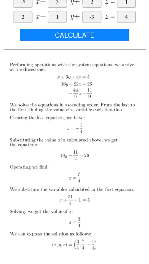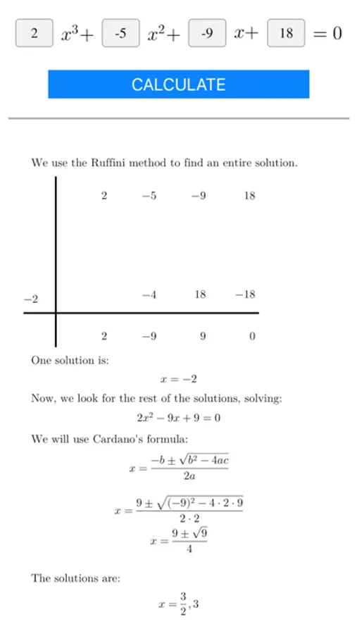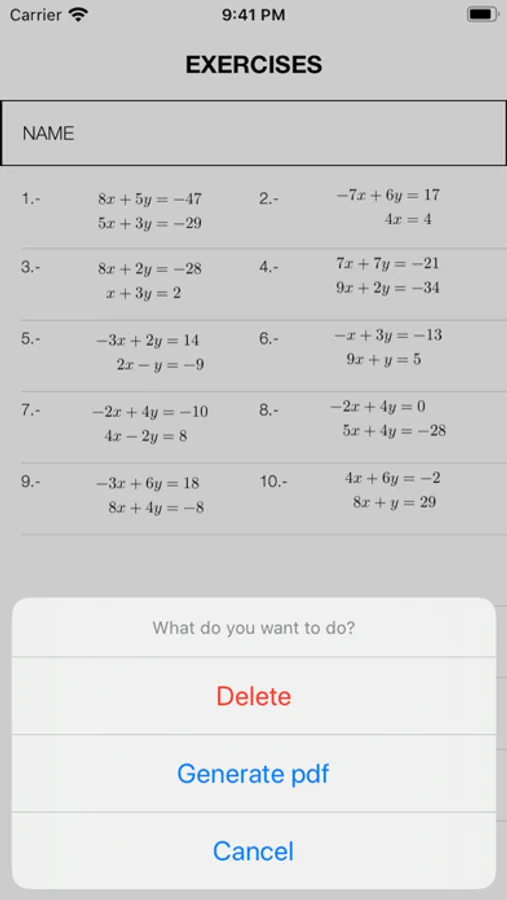 Solve second and third degree equations step by step. Solve systems of two and three equations in steps. Generate exercises with and without solutions. You can transform that view into a pdf document that you can export.