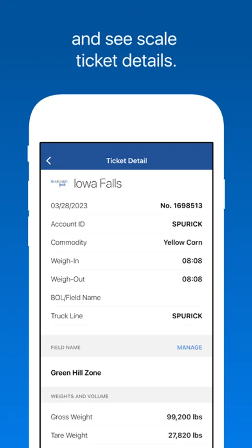 The Seaboard Grain app is an essential mobile solution that connects your operation to your grain facility, providing real-time, actionable information to help you manage and grow your business.