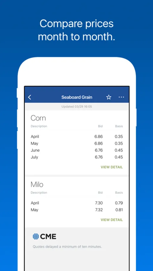 With a robust toolset that's constantly evolving to meet the demands of the modern grower, your Seaboard Grain app is built with powerful features to help you save time and maximize profits, including: