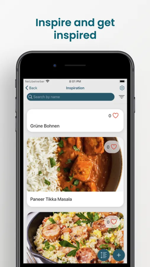 Get inspired by created recipes and add needed items directly to your shopping list. You can also easily create your own delicious recipes and share them with the community.