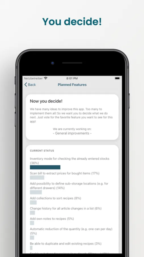 You can also use the "Planned Features" in the app to decide which feature should be implemented next. This way, we know which feature is most important to you!