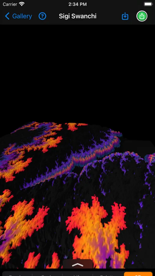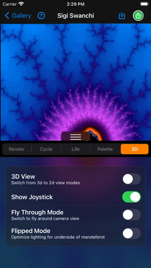 Explore in 2 dimensions, or strap on your flight helmet and dive into your discovery with a 3 dimensional fly through experience. Become mesmerized by the changing colors, amazing patterns and breath taking 3 dimensional fractal scenery.