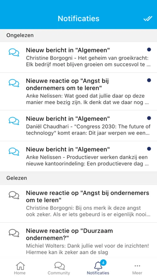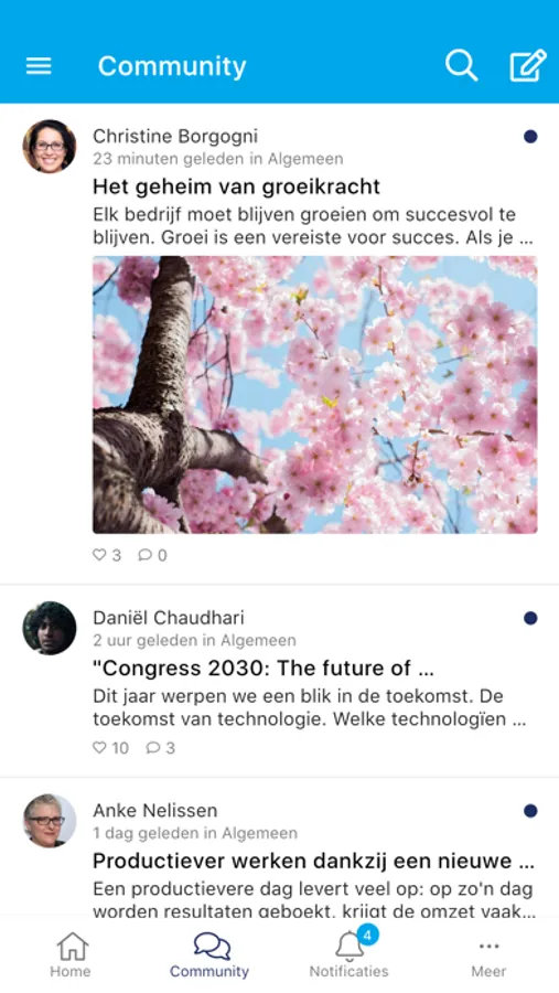 Stel vragen, reageer op berichten, deel kennis of ga de discussie aan binnen je community.