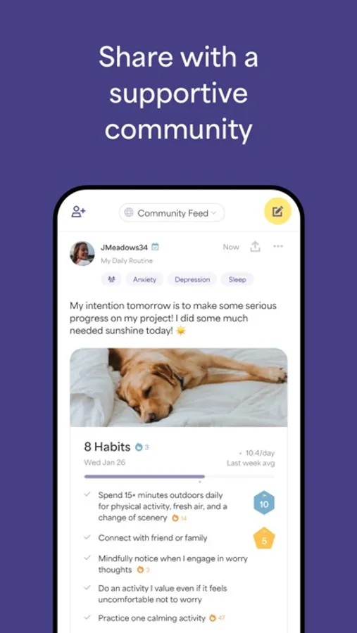 The Most Days system is packed with tools like clinical assessments, mood logging, robust analytics, optional accountability partners, a supportive community and even our exclusive AI Health Coach ™ that gives you personalized advice to make your new habits stick.